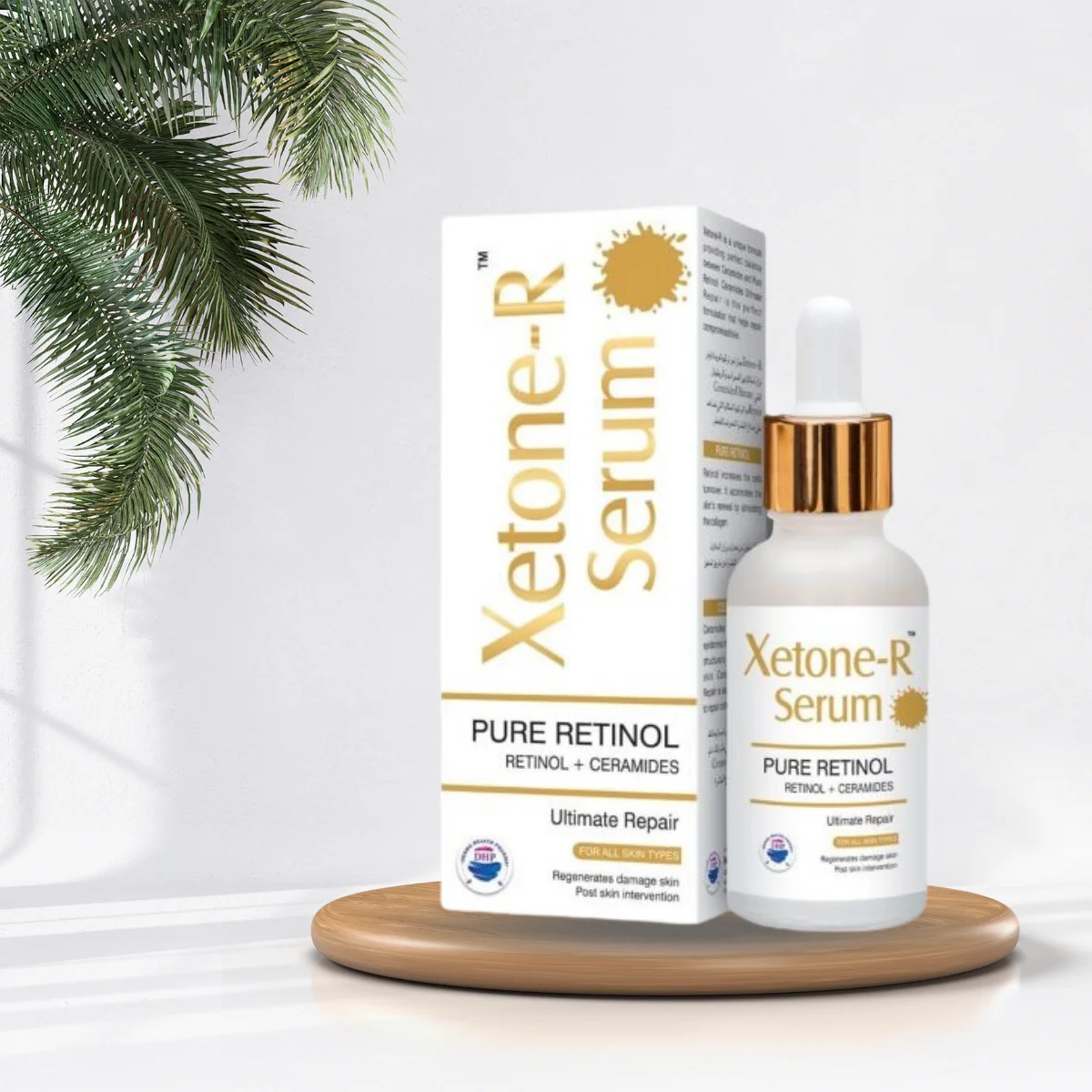 Xetone-R Serum is a dermatologist-formulated treatment powered by Retinol (Vitamin A derivative) to promote cell turnover, improve skin texture, and reduce the visible signs of aging such as fine lines, wrinkles, and pigmentation. Known for its scientifically backed performance, Retinol works deep within the skin to boost collagen production, fade dark spots, and smooth rough or uneven skin.